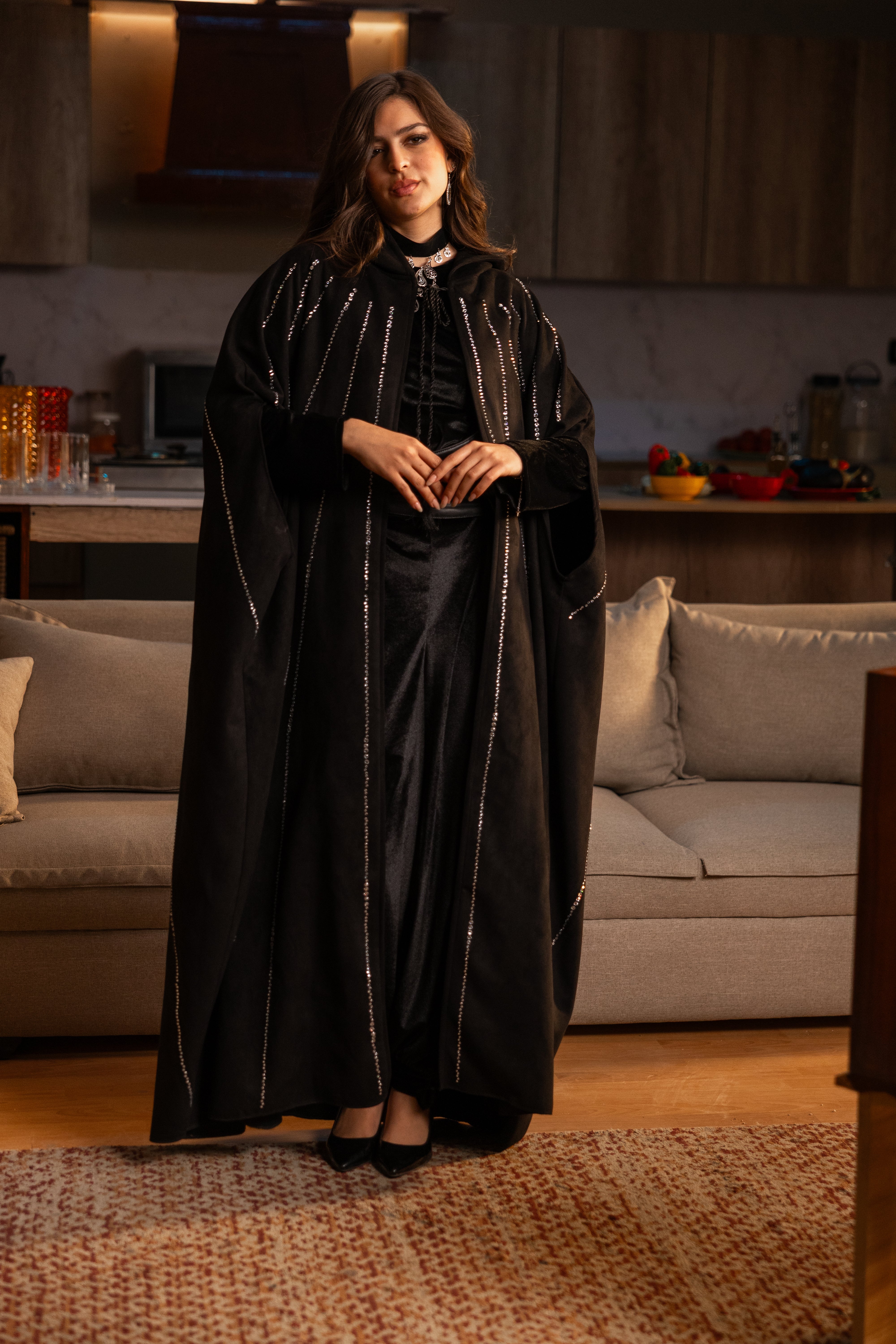 Studded suede kaftan designed with a relaxed, flowing silhouette, accented with sleek stud detailing for a modern edge. Crafted to offer comfortable wear while maintaining a refined and polished appearance.