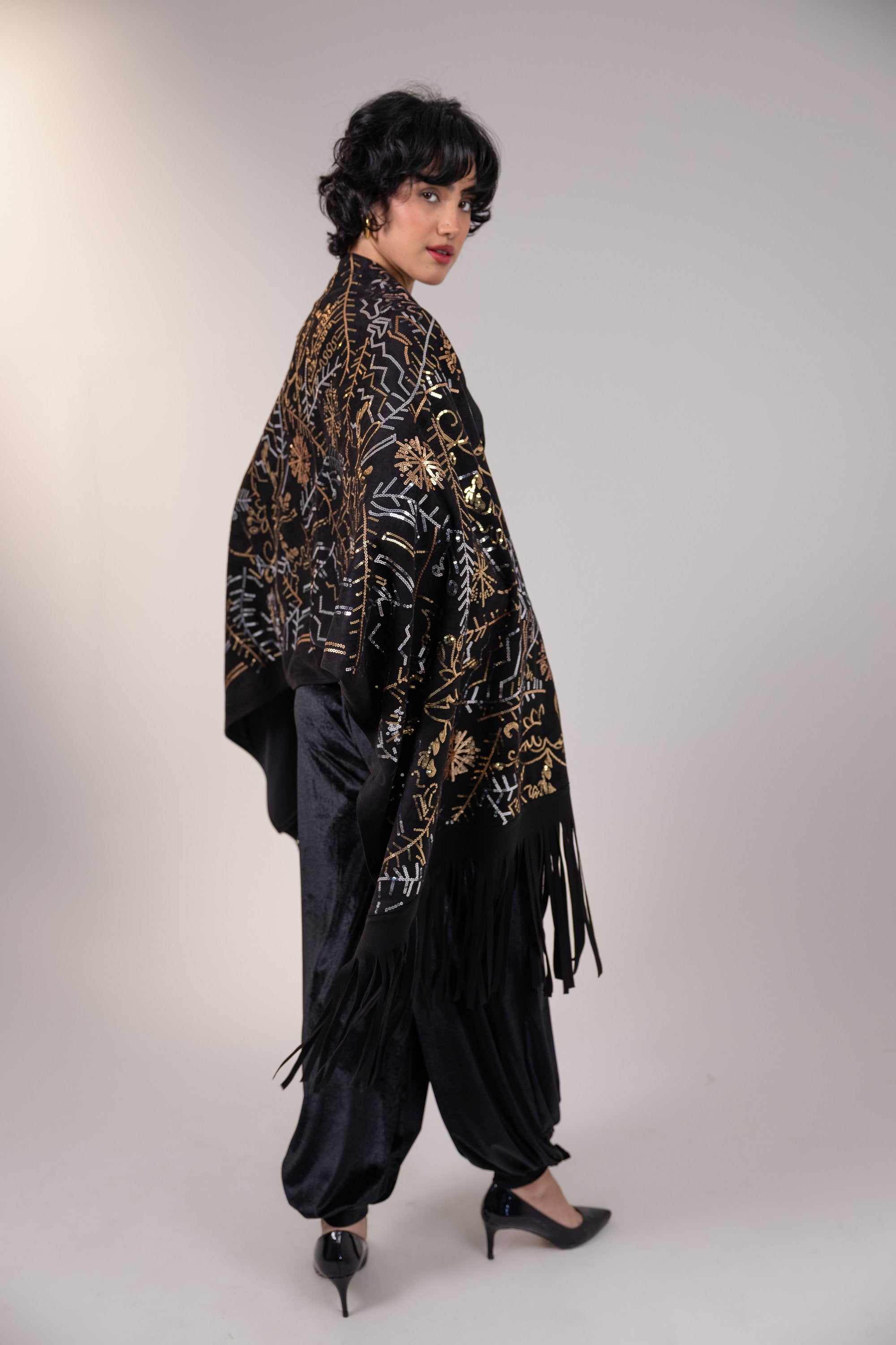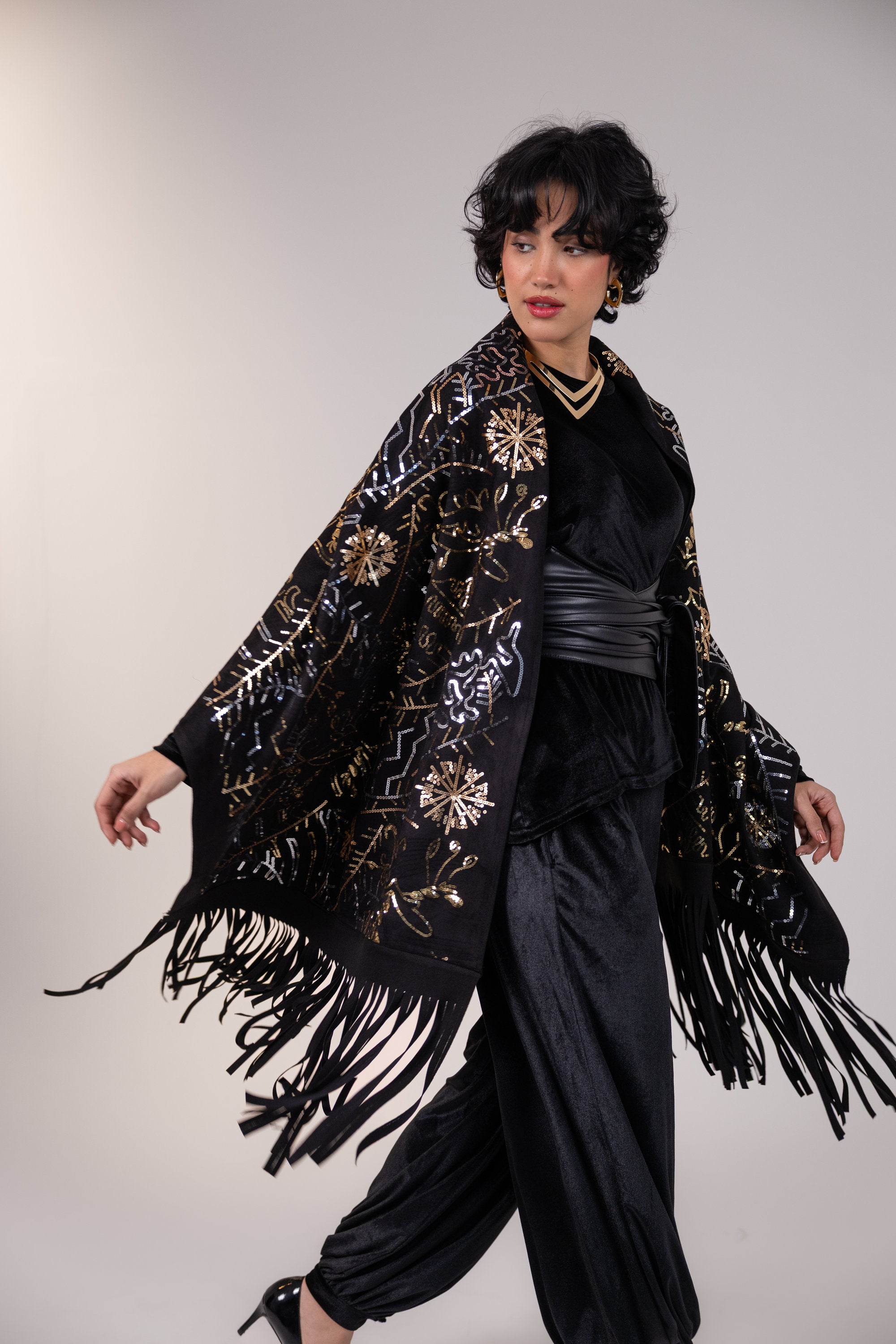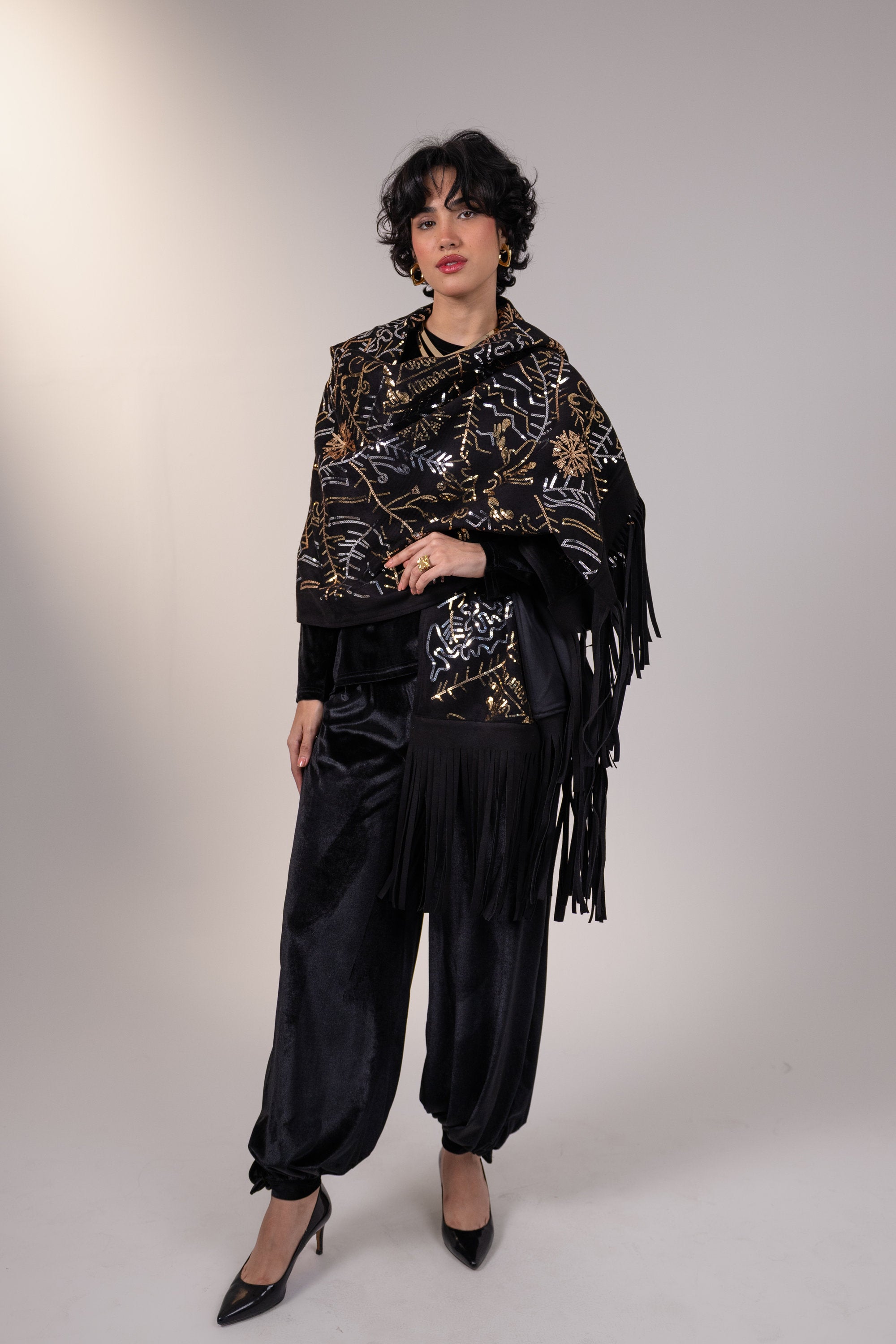 Embroidered suede scarf designed with a soft, elegant drape, finished with refined detailing for a polished look. Crafted to offer comfortable wear while adding a sophisticated touch to any outfit.