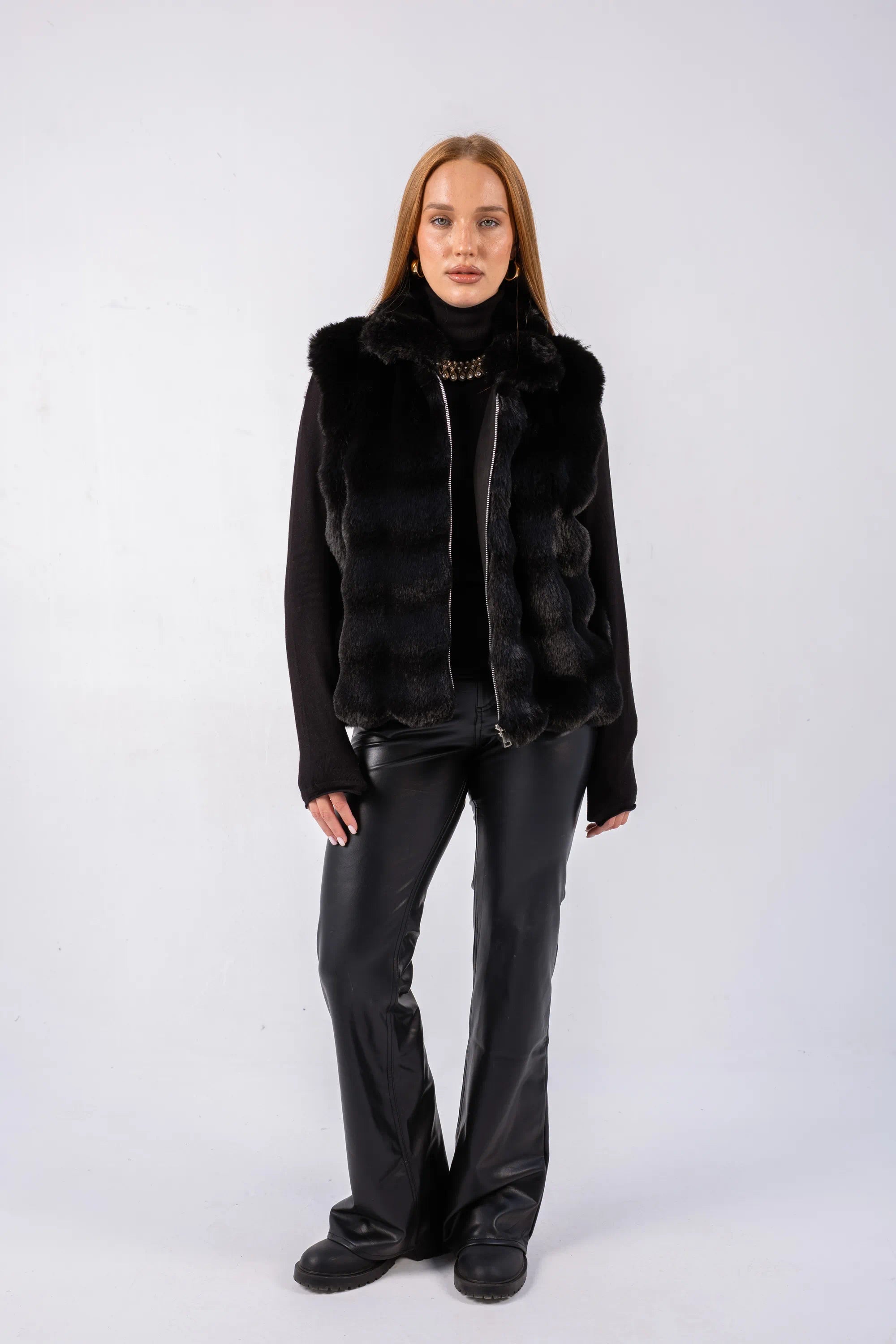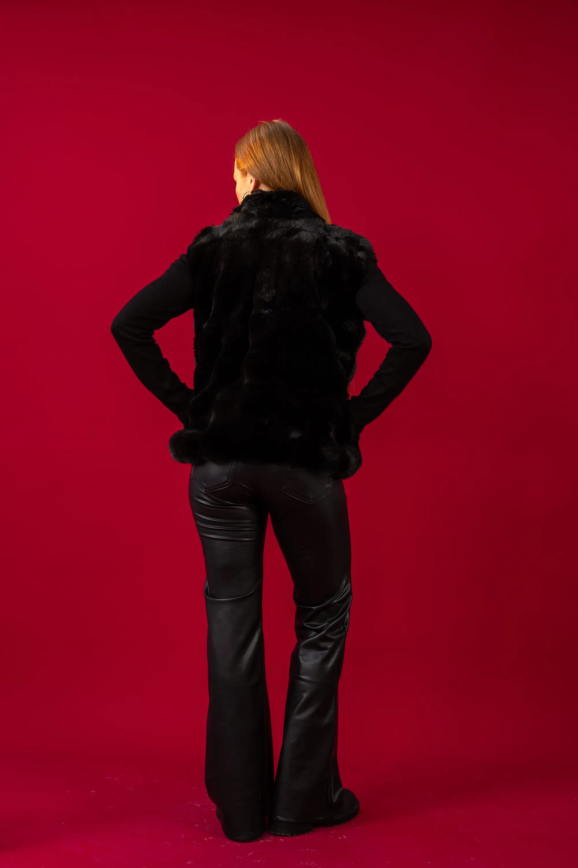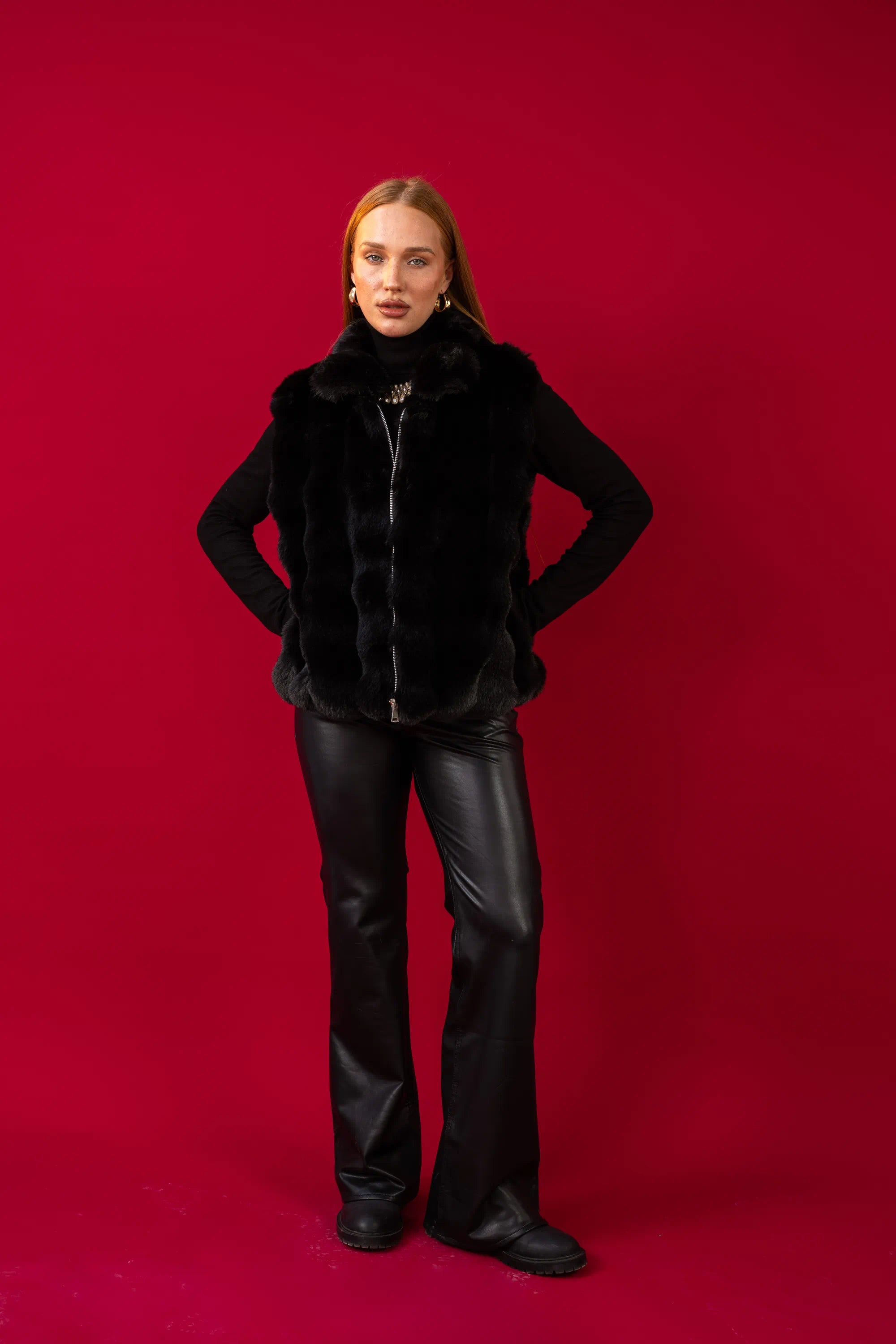 A plush fur vest with a soft padded feel, designed with a sleek zipper closure and practical side pockets. Perfect for adding warmth, comfort, and effortless layering to your cold-weather looks.