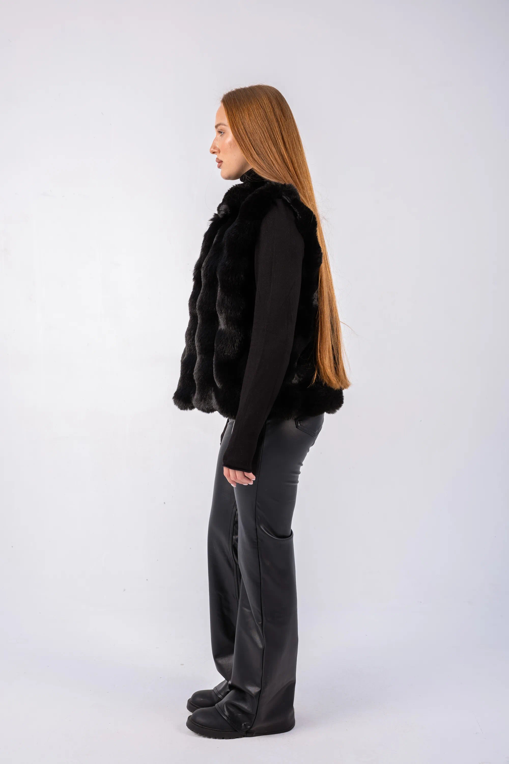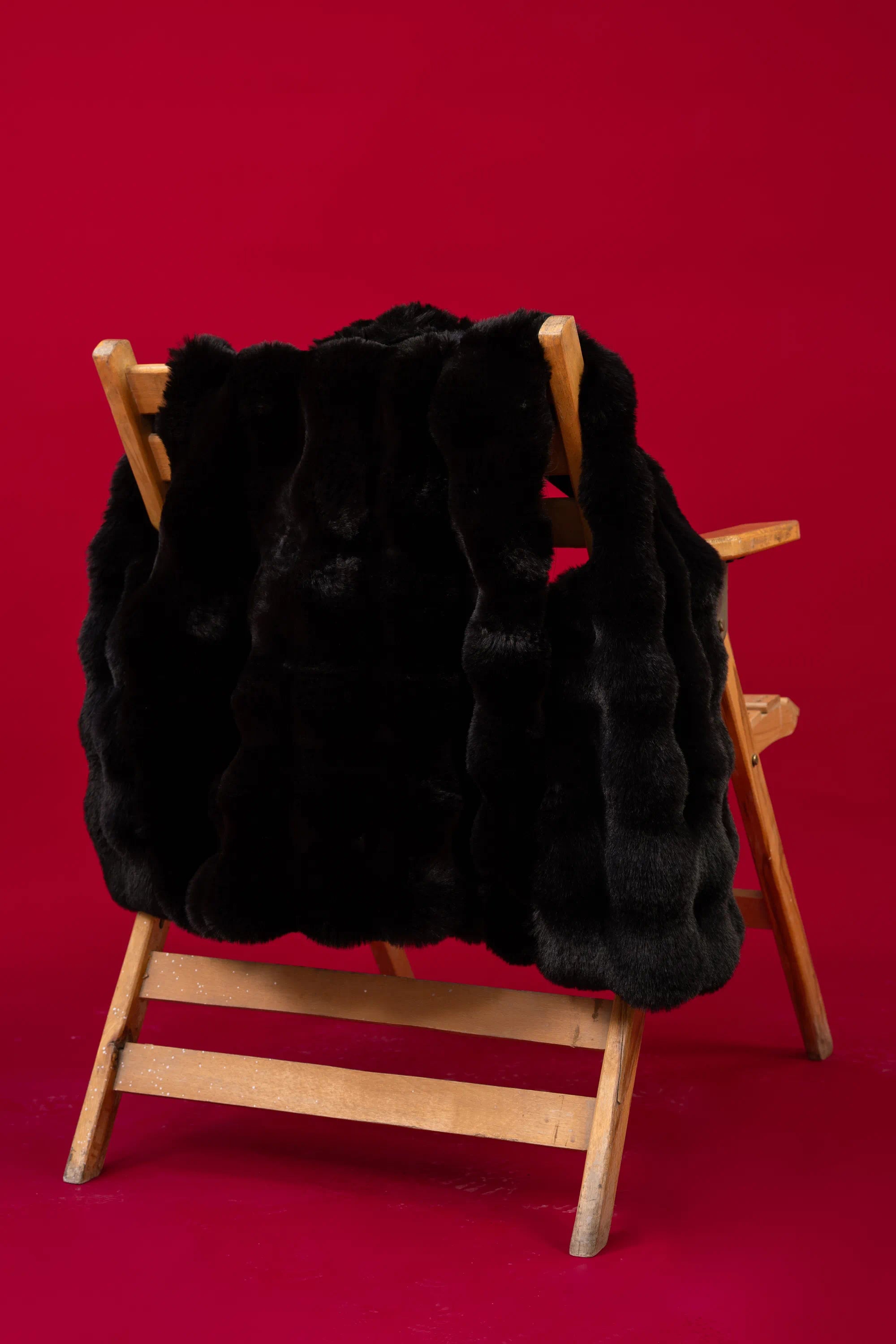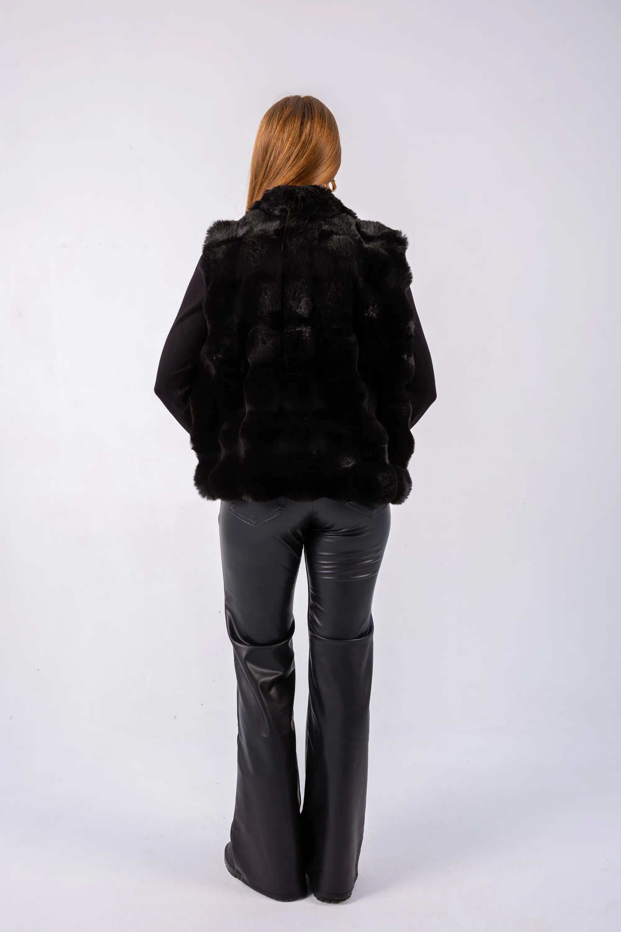 A plush fur vest with a soft padded feel, designed with a sleek zipper closure and practical side pockets. Perfect for adding warmth, comfort, and effortless layering to your cold-weather looks.